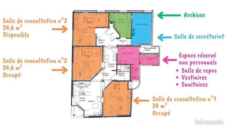 Des tarifs compétitifs : Location à 475 euros par mois pour la salle de consultation, hors charges. Une offre tarifaire pensée pour faciliter l'installation de spécialistes.