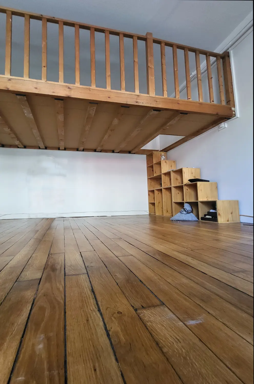 Ancien logement de gardien, il se compose d'une pièce principale au Rez de chaussée de 14,37m², de hauteur 3m30 avec mezzanine et 2 fenêtres. Et en souplex, une cuisine, un dégagement desservant une pièce et une salle d'eau avec wc, pour 24m².