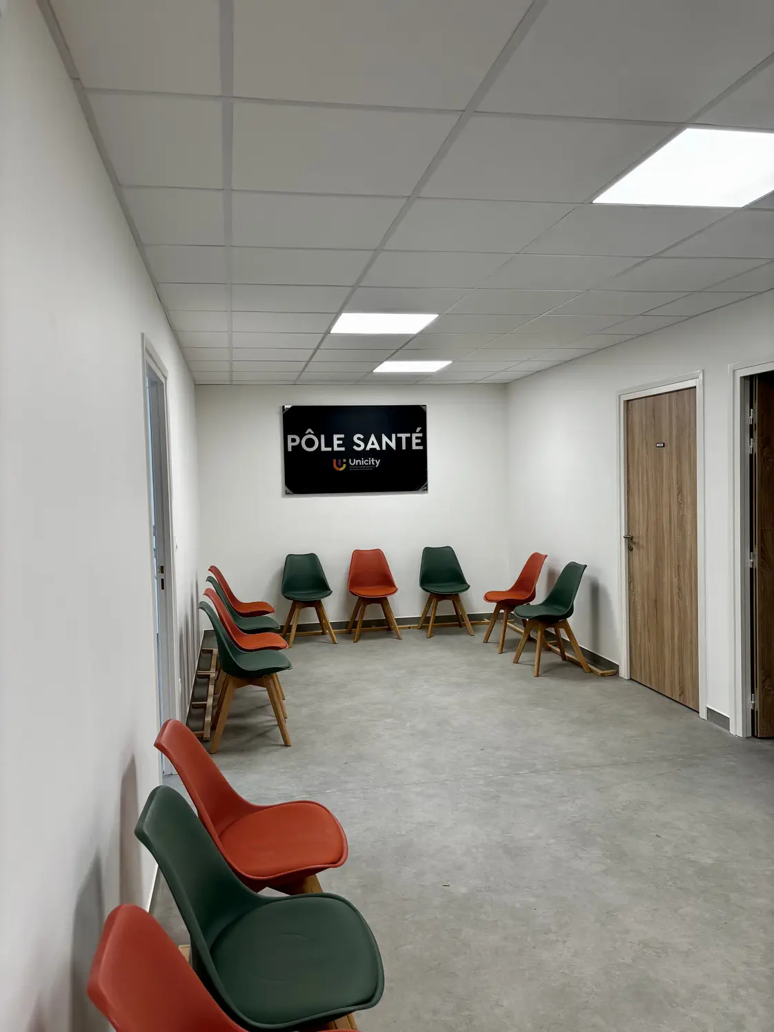De superficie de 26 et 27m², lumineux, vous trouverez une salle d’attente commune aux 4 bureaux ainsi qu’un sanitaire privé réservé aux praticiens, et un second ouvert à votre patientèle aux normes PMR. Nous mettons également à votre disposition un espace privé avec un coin cuisine, repas et salon lumineux !