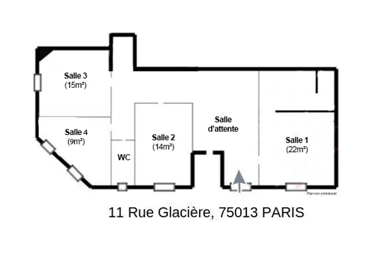 Je vous propose à la location 1 petite salle de consultation (9m2) au sein d’un cabinet médical / paramedical tout neuf situé au Rdc sur rue (accès PMR) au 11 rue de la Glacière, entre le Bd Arago et le Bd du Port Royal.