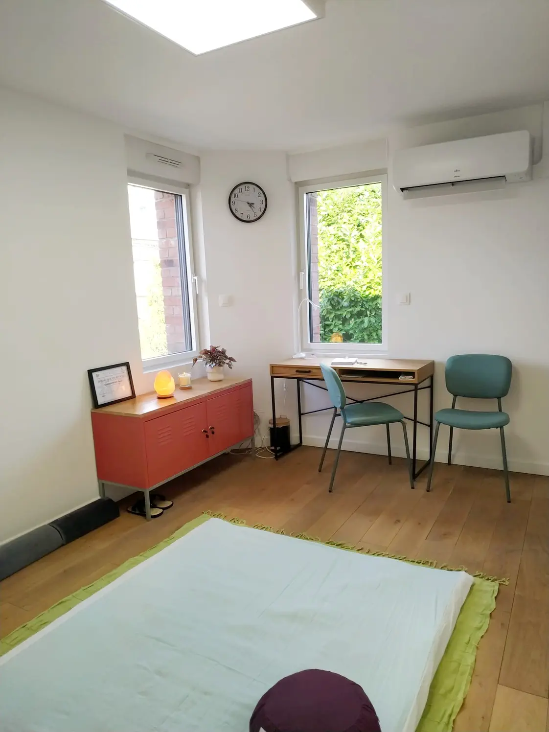 Dans un centre de santé bien être : Ô SOINS caractérisé par une complémentarité des soins proposés où exercent une quinzaine de thérapeute, un esprit d'équipe, la présence d'une piscine (33°-balnéo) et d'une salle dédiée aux ateliers bien être