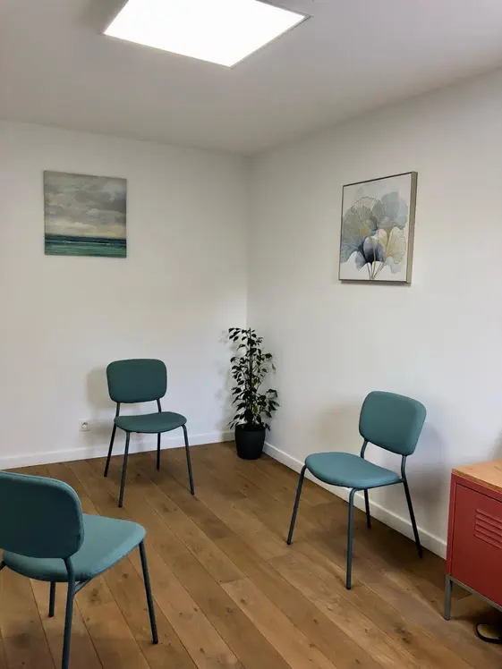Salle d'attente partagée - toilette PMR - cuisine pour les thérapeutes