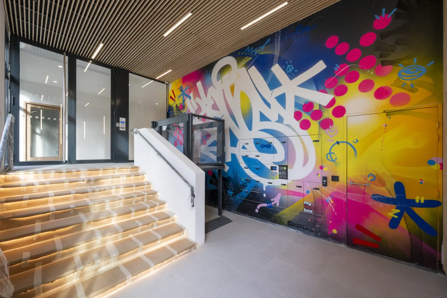 Cet immeuble est juxtaposé à la toute récente implantation ouverte par THE BABEL COMMUNITY, coliving hôtelier de 245 chambres avec restaurant, bar et salles de sport.