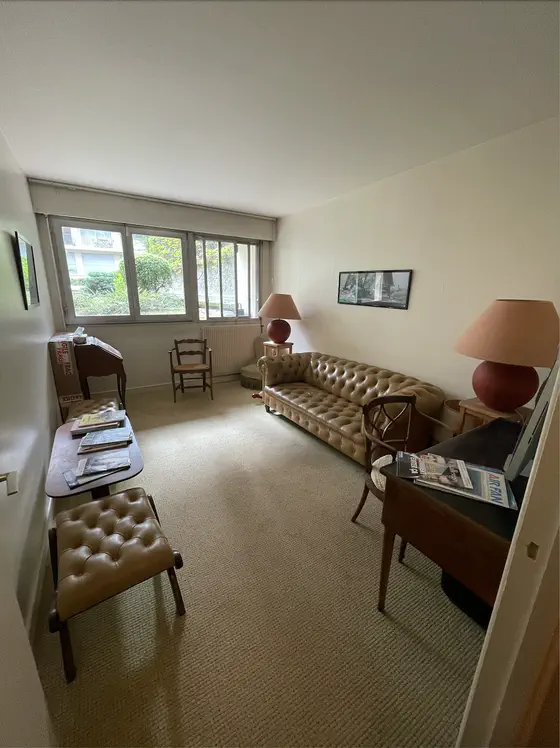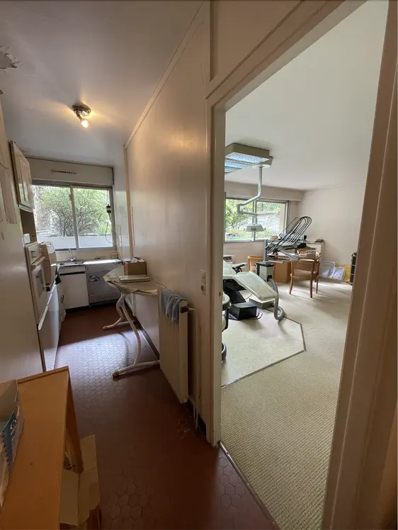 Installé au 1er étage d’un immeuble semi-récent (1974) de standing avec gardien, l’espace bénéficie d’un environnement particulièrement calme, donnant entièrement sur jardin.
