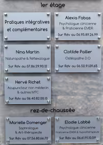 Nous sommes actuellement 3 psychologues specialisées psychotrauma (EMDR, Hypnose, etc), une ostéopathe, un acuponcteur, une naturopathe et une sophrologue.