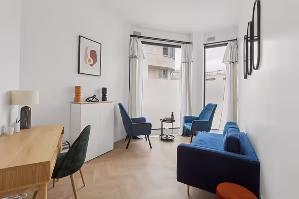 Location 3 jours (mercredi, jeudi, samedi) d'un cabinet à Levallois-Perret : pièce de 14m2 en RDC côté cours dans un bel immeuble Haussmannien. Charme de l'ancien : parquet, moulures, cheminée et belle hauteur sous plafond.