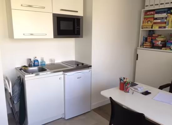 Vous pourrez utiliser une cuisine avec micro-ondes, frigidaire, machine à café