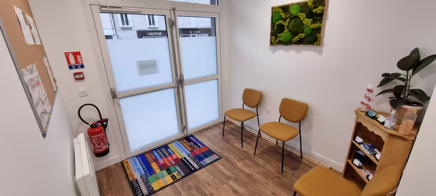 La salle d'attente et les toilettes sont partagés avec une pédicure podologue installée depuis 8 ans.