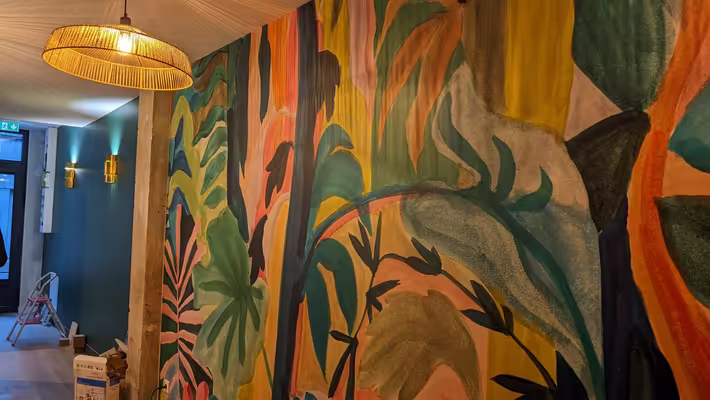L'ensemble du local vient d'être créé dans un ancien atelier d'artiste plein de charme. Il est entièrement neuf. Matériaux de qualité (isolation phonique portes et murs, parquet...) et décoration chaleureuse.