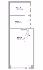 Le local se décompose en 3 pièces de 38m² / 11.84m²/ 10.41m²