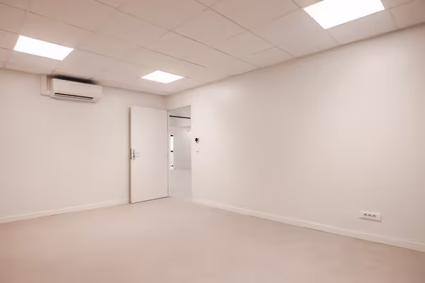 Murs du bureau actuellement blancs : possibilité de peindre ou tapisser selon votre projet.