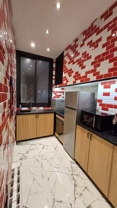 Accès à une salle d’attente commune et à une cuisine partagée.