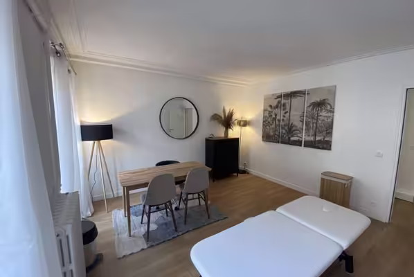 La location commence à partir d'une journée par semaine, jusqu'au temps plein. Tout est pris en charge : ménage, maintenance, assurance, charges, mobilier, rangements, électricité, wifi. Vous pouvez vous concentrer sur votre pratique !