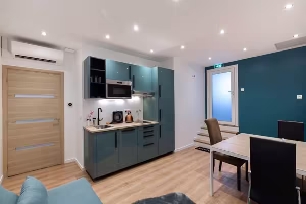Cabinet neuf, rue de Paris Les lilas. Une salle de repos avec kitchenette.