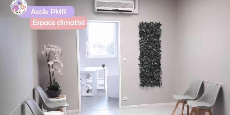 Locaux récents (2017), en Rez-de-Chaussée, accessibles PMR, composés d'une salle d'attente commune, d'une kitchenette-salle de pause et de toilettes