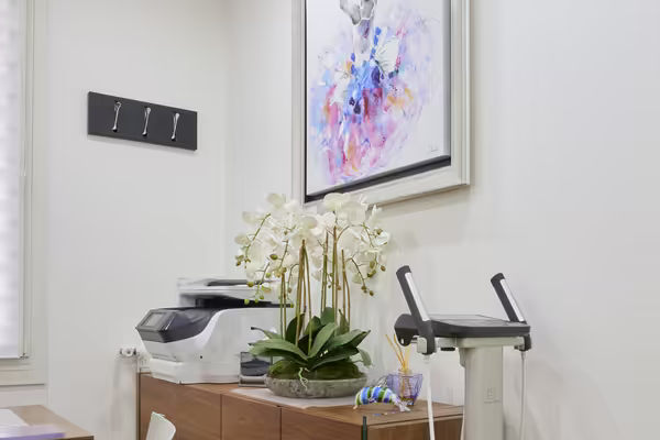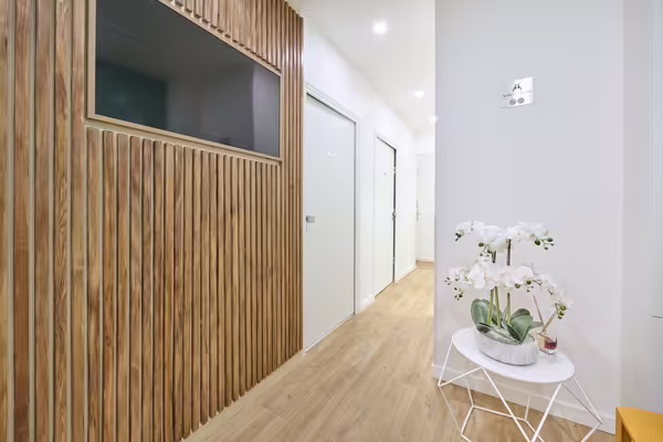 Salle d'attente : Accueillante avec espace secrétariat, rangements dédiés, kitchenette et WC pour praticiens et patients.