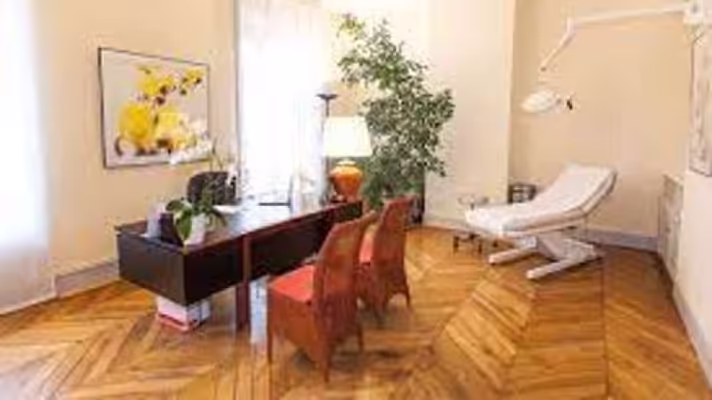Louée meublée avec bureau, chaises confortables, placards étagères, wifi. Il comprend également une grande salle d'attente qui est partagée entre les 4 salles de consultation et d'un interphone.