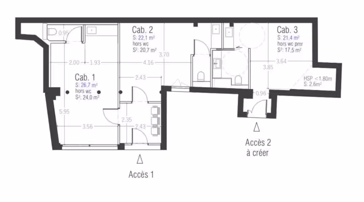 Il occupe une surface en très bon état de 400 m2 répartie en en 9 salles de consultations (pour une surface de 200m2), sur 3 niveaux aux normes handicapé, avec notamment une grande cuisine, un grand de local de stockage, 3 salles d’attente, 3 WC dont 1 privatif, un ascenseur pour personnes à mobilité réduite (sur une surface de 200 m2)
