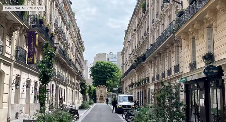 Paris 9°, sur rue passante et carrefour, près métro et bus. Quartier touristique