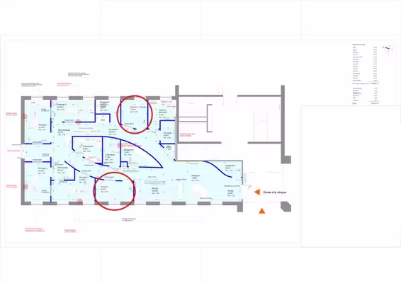 Les salles de consultations ferront entre 15 et 24m2, toutes lumineuses, au calme sur cours avec point d'eau et climatisation réversible.3 espaces d'attente et d'accueil sont prévus.