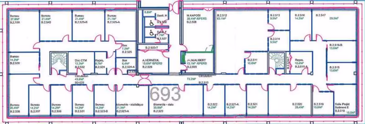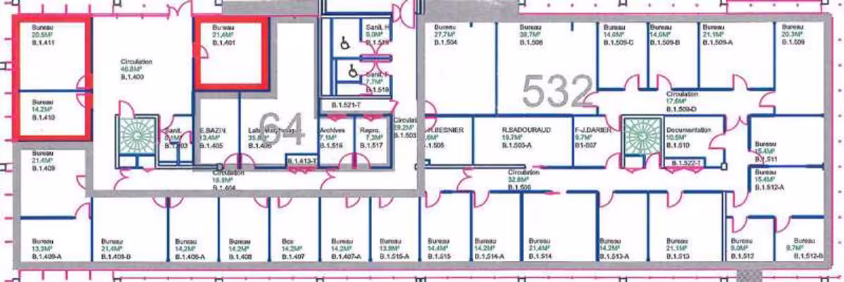 - 1 bureau de 13,5m2 + espace commun (15m2).