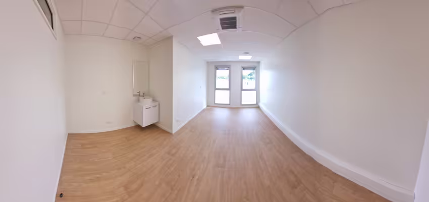 Cabinet de 85m2 avec 2 salles de soins insonorisées, salle commune avec espace facturation, salle d’attente, toilettes PMR, kitchenette.