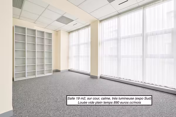 Le loyer est de 900€/mois pour une salle de consultation de 15m2 environ avec point d'eau et climatisation réversible. Les charges sont de 100€.