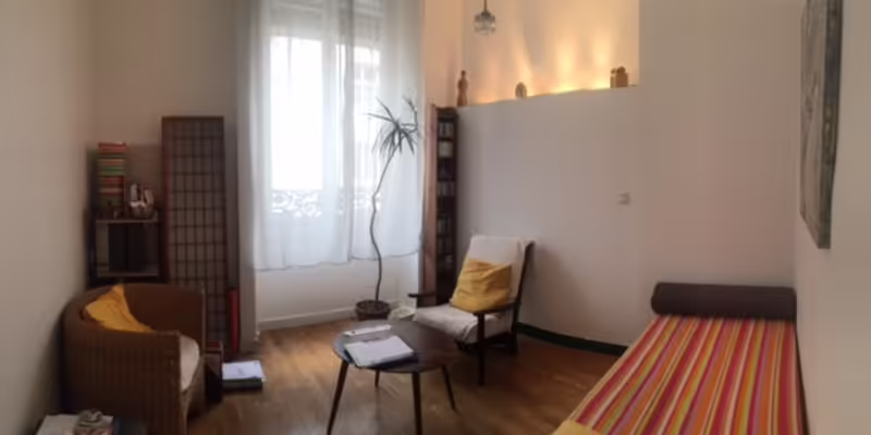 En plein centre de Lyon, au pied du métro Bellecour, cabinet indépendant de 12 m2 dans un appartement bourgeois au 4ème étage, donnant sur cour, donc pas bruyant. Toilettes et point d'eau. Ce cabinet est à louer une douzaine d’heures par mois à partir de septembre 2025. Grande amplitude horaire, pas de jours fixes, partage de planning en ligne avec les deux thérapeutes en place (une psycho-somato et un psychanalyste). Le tarif est de 200 euros/mois tout compris (charges, chauffage, ménage).
