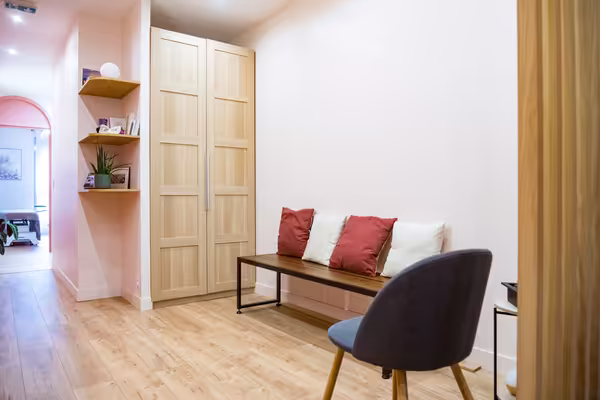 - Le mardi toute la journée : Le cabinet est équipé d'une table d'ostéopathe, 1 bureau et 2 chaises. Idéal pour pratiques psycho-corporelles.