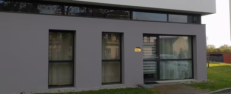Le cabinet est aux normes PMR et a son parking privé dans un axe très facile d'accès à Pluvigner.