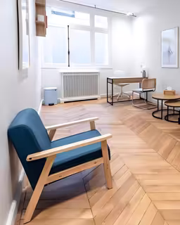 Salle d’attente partagée avec une ostéopathe.