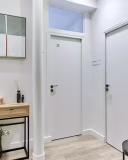 Le cabinet se compose d'une salle d'attente, d'une salle de bain (avec micro onde et machine à café) d'une pièce de consultation avec 2 ostéopathes et d'une deuxième pièce de consultation avec une psychologue et une psychopédagogue. Le cabinet se situe au 3ème étage avec ascenceur.