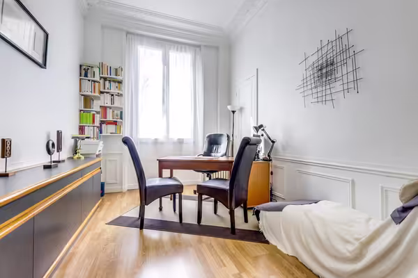 Psychologue, installée depuis 15 ans à Denfert Rochereau, partage son cabinet .