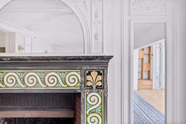 Le cabinet bénéficie d’une grande hauteur sous plafond, d’un agencement optimal et de prestations de qualité (parquet, moulures, cheminées).